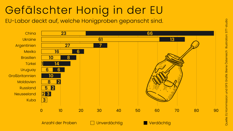 Im Auftrag der Europäischen Kommission führt das Labor der Gemeinsamen Forschungsstelle (GFS) Analysen von Lebensmitteln durch. Das erschreckende Ergebnis: Von 320 gezogenen Honigproben war fast die Hälfte (46%) „verdächtig, nicht den EU-Honig-Richtlinien zu entsprechen“, also gepanscht zu sein. Reinhard Hetzenauer ist Obmann von Biene Österreich, dem Dachverband der Erwerbs- und Freizeitimker. Er ärgert sich, wenn im Supermarktregal Fake-Honig neben heimischer Qualitätsware steht. „Solche Fälschungen sind illegal. Aber wer nur auf den Preis und nicht auf die Herkunft achtet, hat schnell gefälschte Ware in der Einkaufstasche.“