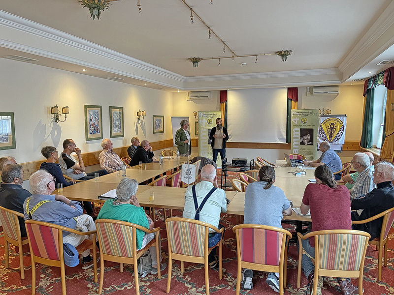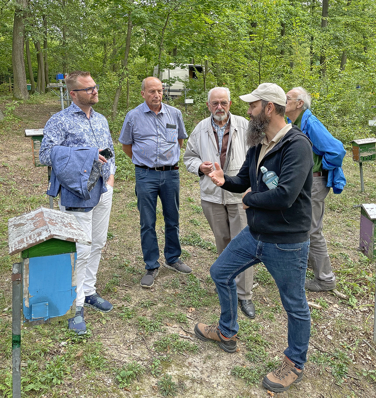 Alt-Imkermeister und ehemaliger Langzeit-Belegstellenleiter Anton Schleining folgte am Samstag der Einladung und erzählte aus den Anfangszeiten der Belegstelle und über die Entwicklung in den darauffolgenden Jahrzehnten. Belegstellenleiter IM Ing. Franz Obendorfer konnten dann einen Einblick in die neuere Zeit der Bienenzucht und über aktuelle Herausforderungen geben. Am Samstag Nachmittag war eine Exkursion zur Bio-Imkerei Obendorfer in Wilfersdorf am Programm. Der Bürgermeister der Stadtgemeinde Mistelbach Erich Stubenvoll ließ es sich nicht nehmen, die Gäste danach persönlich im Stadtwald willkommen zu heißen und übermittelte abschließend am Sonntag auch beim offiziellen Teil im Hotel Zur Linde die Grüße der Gemeinde. Für die Zukunft konnte zwischen dem IBSZ e.V. und den regionalen Sklenarzüchtern eine engere Zusammenarbeit und regelmäßiger Austausch vereinbart werden. Wir sagen Danke für den Besuch in unserer Region und freuen uns auf ein Wiedersehen!