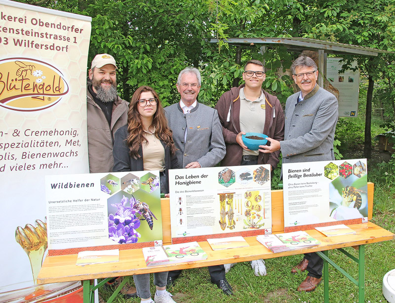 Am vergangenen Samstag (17. Juni) fand der alljährliche Tag der offenen Tür auf der Belegstelle Hirschgrund statt. Wie 2022 erstmals erprobt wurde dieser Veranstaltung auch gleich der Bezirksimkertag angeschlossen. Die Obfrau der Bezirksgruppe Mistelbach des Niederösterreichischen Imkerverbandes konnte rund 50 interessierte Gäste begrüßen. Darunter befanden sich unter anderem der Präsident des NÖIV IM Ing. Josef Niklas, sein Stellvertreter DI Wolfgang Messner, der Kassier Mag.(FH) Günter Hödl, in Vertretung des Bürgermeisters der Ortvorsteher von Mistelbach Herbert Eidelpes und mehrere Obleute der Ortsvereine. Neben dem aktuellen Belegstellenleiter IM Ing. Franz Obendorfer und den Belegstellenwarten Anni und Johann Sarrer konnte auch der Belegstellenleiter in Ruhe IM Anton Schleining begrüßt werden.