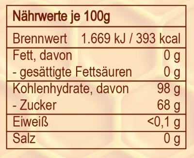 Inhaltsstoffe: Zucker, Glukosesirup, Lakritze, natürliche Aromen, Propolis 3%, Vanillin