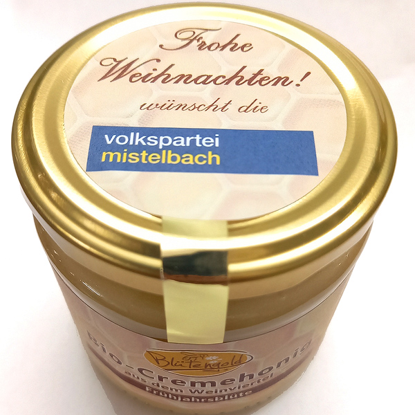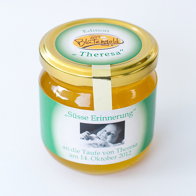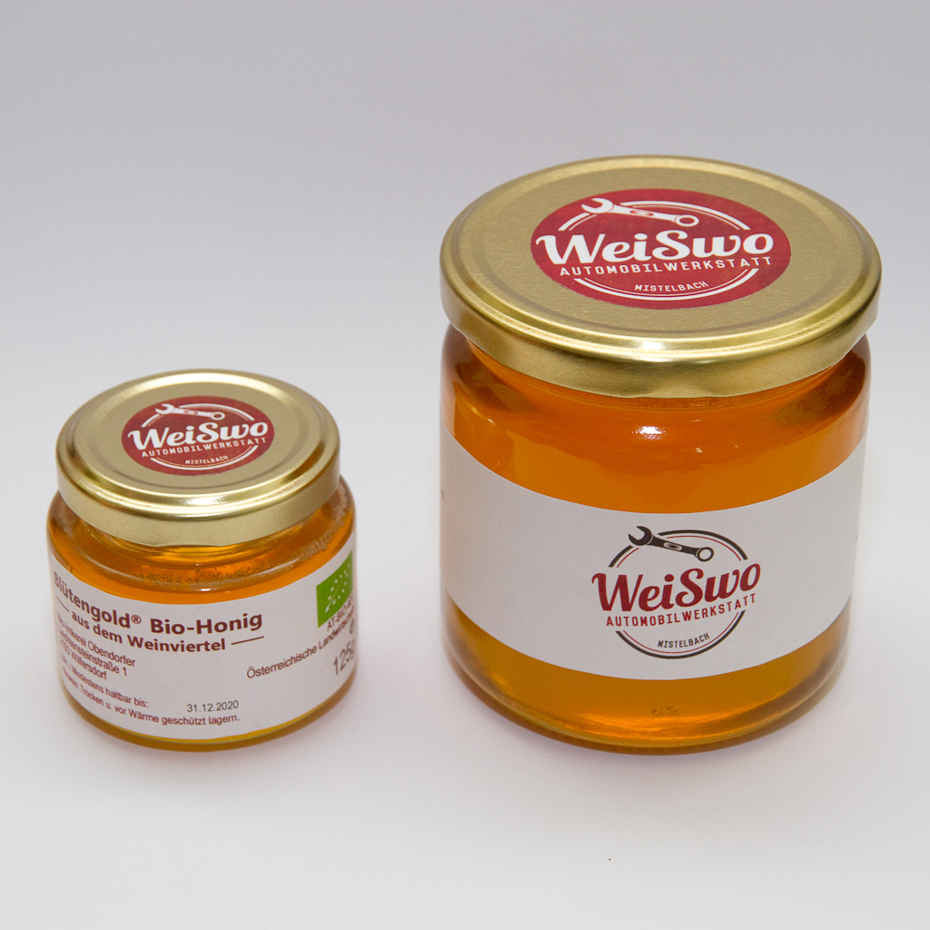 Als Besonderheit bieten wir Ihnen für Ihren Event eine spezielle Abfüllung mit individuellem Etikett an. Egal ob Hochzeit, Taufe, Weihnachtsfeier oder was auch immer Ihnen einfällt - mit einem süßen Präsent als Giveaway überraschen Sie alle Gäste oder Mitarbeiter und schaffen langfristige Erinnerungen. Ebenso als nachhaltiges Werbegeschenk im Rahmen einer Promotion sind unsere Bio-Honig Sonderabfüllungen bei Industrie und Wirtschaft sehr gefragt.